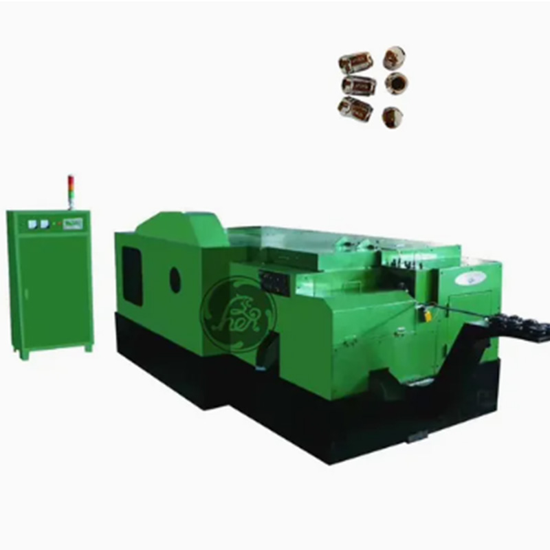 Машина за производњу матица са 6 станица користи шест узастопних станица за хладно екструзију да постепено трансформише металну жицу у празну матицу. Калупи на свакој радној станици су независни. Ако се један калуп оштети, само га замените уместо целог комплета. Ово може уштедети много новца на калупима.