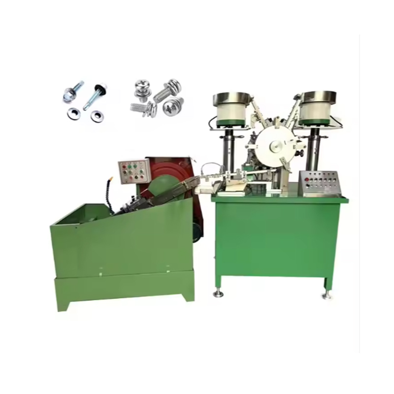 Машина за склапање шрафова састоји се од вибрирајуће плоче, сепаратора завртња, цеви за пуњење ексера, вођице итд., Који могу аутоматски да доврше процесе преноса, монтаже и затезања шрафова и подложака.